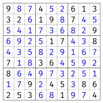 将格子填满使得每一行,每一列,和每一个小的九宫格恰好包含1-9这9个数字正是由于规则简单而又变化多端,数独一时间风靡全球。